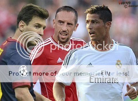 Trong danh sách, 3 cái tên Ronaldo , Messi và Ribery được chú ý nhiều nhất . Đó là những ứng cử viên nặng ký cho giải Quả bóng vàng 2013.
