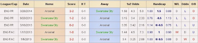 Kể từ mùa giải 2011/12 thăng hạng, Swansea luôn được xem là đội bóng khó chịu đặc biệt là với những đội bóng trong nhóm Big Four. Nhìn vào thành tích đối đầu 3 mùa vừa qua là minh chứng rõ rệt nhất, Swansea không hề thua kém Arsenal khi có được 2 trận thắng, 1 trận hòa và 3 trận thua.