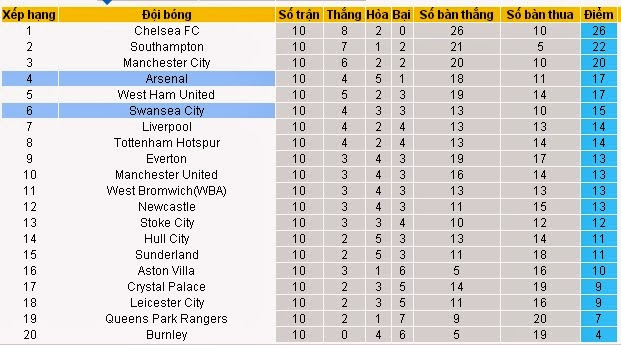 Thêm nữa mùa giải năm nay, phong độ của đội bóng xứ Wales là khá tốt. Trước khi vòng 11 diễn ra, đội bóng có biệt danh Thiên Nga Đen đang đứng thứ 6 trên BXH (thắng 4 hòa 3 và thua 3) với 15 điểm, chỉ kém Arseanl đúng hai điểm. Nếu chỉ tính riêng trên sân nhà, Swansea thi đấu khá tốt khi có 3 trận thắng, 1 trận hòa và để thua 1. Ngay cả trận mất điểm duy nhất trên sân nhà Liberty, Swansea cũng cho thấy được sự khó chịu của mình. Bất chấp Swansea phải thi đấu thiếu người từ phút 40, đội bóng đang đứng thứ hai trên BXH là Southampton phải rất vất vả mới có được trọn 3 điểm nhờ bàn thắng có phần may mắn của Wanyama ở phút 80.