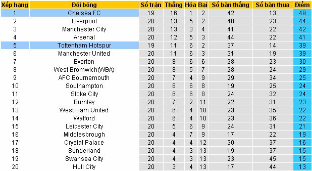 Chelsea vẫn đang duy trì lối chơi mới lạ và đầy sinh lực của mình để vững vàng vị trí số 1 trên BXH. Trong khi đó Tottenham đã chiếm một vị trí trong top 4 sau chiến thắng ấn tượng trước Watford. Bước vào vòng đấu 20, họ sẽ phải đón tiếp "The Blue", kém đối thủ tới 10 điểm là khoảng cách rất lớn để có thể bắt kịp, nhưng Tottenham lại cần điểm để duy trì 1 vị trí an toàn trong 4 đội dẫn đầu. Lượt đi Chelsea đã thể hiện bản lĩnh với chiến thắng 2-1, lượt về này nhiều khả năng Tottenham chia điểm và chấm dứt chuỗi 13 trận thắng liên tiếp