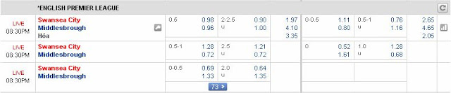 Tổng bàn thắng lẻ: Trong 8 trận sân nhà vừa qua của Swansea, có 6 trận kết thúc với tổng bàn thắng là số lẻ. 5/7 trận sân khách gần đây của Middlesbrough cũng có số bàn thắng không chia hết cho 2. Đây là cơ sở để tin rằng tổng bàn thắng lẻ sẽ xuất hiện ở trận đấu này.