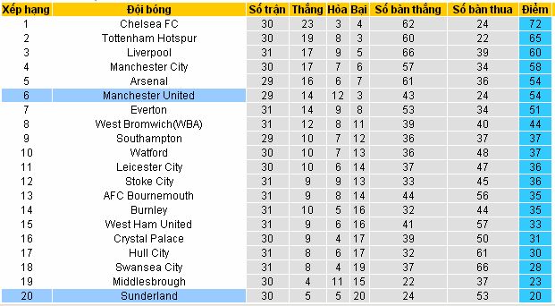 + Thời điểm này, Man Utd không còn hào quang của năm xưa, giờ đây họ chỉ là CLB top 2 của giải ngoại hang. Có nghĩa là mức cố gắng thì họ sẽ tham dự ở giải đấu Europa league. Bên cạnh đó, MU gặp khó khăn không ít về lực lượng do án treo giò Zlatan Ibrahimovic và một số cầu thủ gặp chấn thương. Đội ngũ dự bị khá hùng hậu của MU chưa thể lấp đầy khoảng trống mà Ibrahimovic, Paul Pogba hay Ander Herrera bỏ lại. Tình hình sức khỏe của Anthony Martial, Wayne Rooney và Luke Shaw chưa đạt phong độ 100% sau khi bình phục chấn thương
