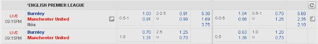 Tỷ lệ kèo bóng đá Burnley vs MU (20h15 ngày 23/4/2017)