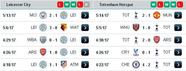 Leicester City vs Tottenham (1h45 ngày 19/5/2017)