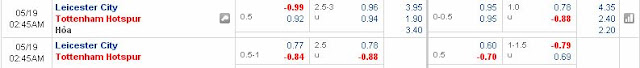 Cả 2 đều không còn mục tiêu về điểm số, Tottenham chắc chắn giành vị trí á quân ngoại hạng năm nay còn Leicester City vững vàng trụ hạng. Với trận đấu có tâm lý thoải mái thế này thì Tài FT là một lựa chọn xứng đáng cho người chơi kèo châu Á. Bằng chứng từ 2 vòng trước khi đã biết được rằng mình đã trụ hạng an toàn Leicester đã nổ tài liên tiếp còn "spurs" cũng có kết quả tương tự với chiến thắng 2-1 vòng vừa qua. Đó cũng là lý do mà đồng loạt các nhà cái để tỉ lệ tài xỉu lên tới 2.75 khi mà đối đầu 3 trận gần đây nhất của 2 đội tối đa chỉ 2 bàn thắng.