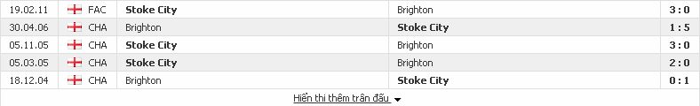 Xỉu FT: 6/7 trận vừa qua của Brighton kết thúc với 2 bàn trở xuống. 4/6 trận sân khách gần đây của Stoke cũng diễn ra tình trạng tương tự. Đây là cơ sở để tin rằng cuộc đối đầu sắp tới giữa hai đội sẽ chỉ có tối đa 2 bàn thắng được ghi.