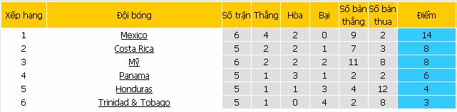 Thể thức vòng loai world cup 2018 khu vực Bắc, Trung Mỹ và Caribe: Đã qua các vòng loại hiện nay còn 6 đội đá vòng tròn 2 lượt đi về. Kết thúc 3 đội đầu bảng sẽ có xuất chính thức vào vòng chung kết WC 2018. Đội đứng thứ 4 trên BXH đá play-off với đội bóng ở khu vực châu Á.