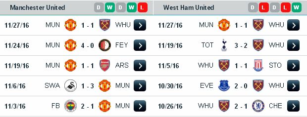 Phân tích soi kèo Man Utd vs West Ham (3h ngày 1/12/2016)