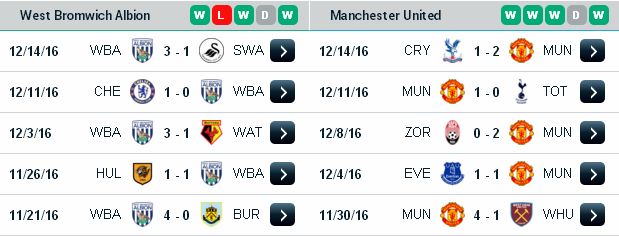 Về phía West Brom cũng đang chơi thăng hoa cới chuỗi 5/6 trận thắng liên tiếp giúp West Bromwich tiếp tục “bay cao” trên BXH giải Ngoại hạng với vị trí thứ 7. , nếu như West Bromwich có thể duy trì một cách ổn định phong độ của mình thì một suất chơi ở Europa League mùa sau không phải điều gì đó quá xa vời. Trở lại vòng 17 để tiếp đón đội bóng đang trở lại rất mạnh mẽ là Manchester United, khó khăn là điều mà đội chủ sân The Hawthorns có lẽ đã lường trước nhưng một tỷ số hòa là điều làm được với đội chủ nhà trận này nếu họ chơi thực sự tập trung.