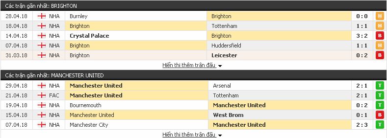 Về phía Brighton đã trụ hạng và họ gần như bỏ rơi giải đấu với tình trạng uể oải thiếu sinh khi (7 trận gần đây chủ nhà không biết đến mùi chiến thắng, thậm chí còn bị đo ván bởi đội bóng đang nguy khốn như Crystal Palace). Trong tình thế 2 bên vừa phân tích khả năng MU vẫn phát huy tốt hàng tấn công của mình để tiếp thêm sinh khi cho trận gặp Chelsea, còn Brighton với tình trạng rơi tự do sẽ nhận không ít bàn thua. Tựu chung trận đấu nhiều khả năng có mưa bàn thắng.