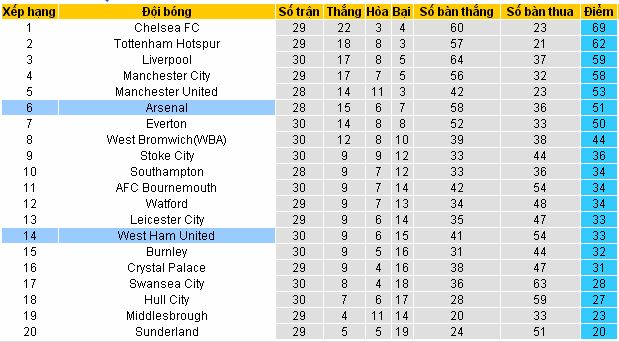 + Chưa dừng ở đó, Arsenal còn được lịch sử đối đầu ủng hộ bởi 17 lần gần nhất đụng độ Pháo thủ ở Premier League, Arsenal thắng 13/14 trận. Gặp đối thủ ngon ăn như W.Ham đêm nay không thắng mới đúng là chuyện lạ ở giải ngoại hạng mùa này.