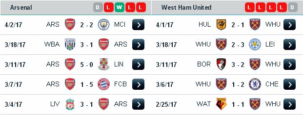 | Nhận định bóng đá Ngoại Hạng Anh: Arsenal vs West Ham, 01h45 ngày 6/4/2017