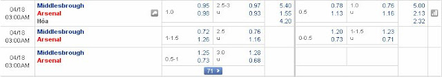 Dự đoán kèo cá độ Ngoại Hạng Anh: Middlesbrough vs Arsenal, 02h ngày 18/4/2017