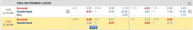 Tổng bàn thắng chẵn: 4/6 trận vừa qua của Arsenal kết thúc với tổng bàn thắng là số chẵn. 15/19 trận gần đây của Sunderland cũng có số bàn thắng chia hết cho 2. Khả năng tổng bàn thắng chẵn sẽ xuất hiện ở trận này.