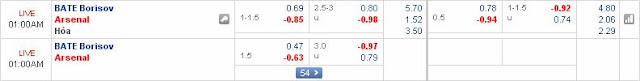 Giải thích tỉ lệ kèo trận BATE Borisov vs Arsenal