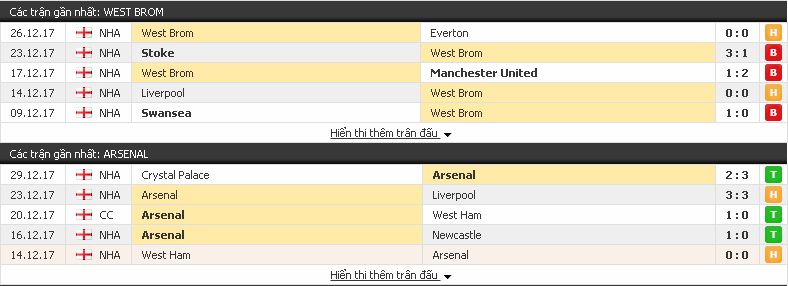 | Phân tích kèo Ngoại Hạng Anh: West Brom vs Arsenal, 23h30 ngày 31/12/2017