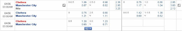Chelsea bất ngờ để thua Crystal Palace 1-2 ở vòng trước và đêm nay lại gặp phải đối thủ lớn Man City. Đây là trận đấu nhiều khó khăn, xét về tỉ lệ kèo nếu bạn chọn Chelsea + 0 khá lý tưởng bởi lx trong từ đầu mùa giải đến giờ Chelsea chưa từng để thua liên tiếp 2 trận. Cộng thêm tâm lý chuẩn bị trận đại chiến khá kỹ trên sân nhà ưu thế vẫn giành cho "blue"