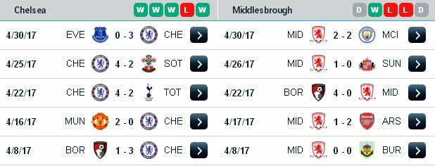 | Kèo cá độ Ngoại Hạng Anh: Chelsea vs Middlesbrough, 02h ngày 9/5/2017