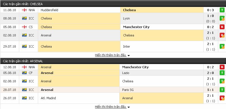 - Đây là lần đầu tiên trong lịch sử Unai Emery và Maurizio Sarri đối đầu nhau. - Hai đội mới hòa nhau 1-1 trong trận đấu tại ICC 2018 hôm 2/8 vừa qua. - 2 trận đối đầu gần nhất trên sân Stamford Bridge kết thúc bất phân thắng bại và không có bàn thắng nào được ghi. - 6 trận đối đầu gần nhất trên các mặt trận, Arsenal thắng 1 trận, còn lại là 5 trận hòa. - Chelsea có chiến thắng 3-0 trước Huddersfield ở trận mở màn mùa giải. - Arsenal để thua 0-2 trước Man City ngay tại Emirates trong trận khai mạc.