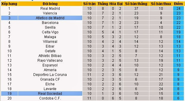 Tại La Liga lúc này, NHM hầu như chỉ quan tâm đến những chiến thắng hủy diệt của Real Madrid hay đội bóng thi đấu bất ổn Barcelona mà quên mất nhà đương kim vô địch Atletico Madrid. Không hào nhoáng và hoa mỹ như Barcelona và Real hay bùng nổ như Valencia hoặc Sevilla, Atletico Madrid âm thầm bám đuổi đối thủ và sau 10 vòng đấu họ đã vươn lên vị trí thứ 3 trên BXH với 23 điểm (kém Real Madrid một điểm và Valencia hiệu số bàn thua).