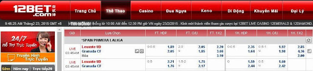 Kèo chấp trận này Levante - 0.25 (Levante chấp đồng nửa): Levante thắng cách biệt từ 1 bàn chọn Levante ăn đủ, Levante hòa thua 1/2 tiền, Levante thua thì thua đủ