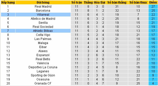 | Tip vip La liga: Bilbao vs Villarreal Vòng 12 lúc 02h45 ngày 21/11/2016 Đá tại sân nhà CLB Bilbao