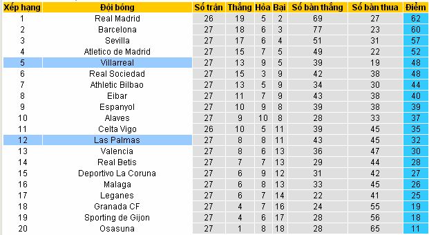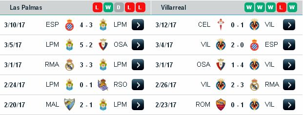 | Kèo bóng đá châu Âu VĐQG Tây Ban Nha: Las Palmas vs Villarreal, 02h45 ngày 18/3/2017