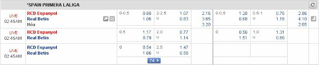 + Espanyol, đội bóng đang có phong độ rất tốt khi chỉ để thua 1 trong 5 trận gần nhất. Tính trên sân nhà thì họ đang có 2 chiến thắng liên tiếp. Trong khi Betis có một phong độ tương đối phập phù. Đặc biệt mỗi lần thi đấu xa nhà thì điểm yếu thường xuyên bộc lộ: hàng thủ thi đấu dưới sức khi để lọt lưới đến 26 bàn trên sân khách, tức trung bình 2 bàn/trận