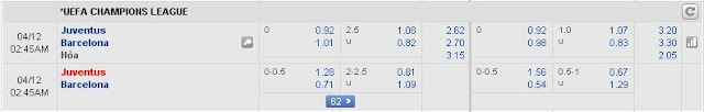 Cặp đấu tâm điểm của vòng tứ kết C1 năm nay là Juventus vs Barcelona, với tỉ lệ đá đồng không chấp có thể thấy là một tỉ lệ khó lựa chọn bởi lẽ. Ở điểm này, Juventus không hề lép vế so với Barcelona và bạn có thể chuyển sang kèo tài xỉu sẽ hợp lý hơn ở trận này. Cá nhân tôi nghiêng về xỉu. Lý do: