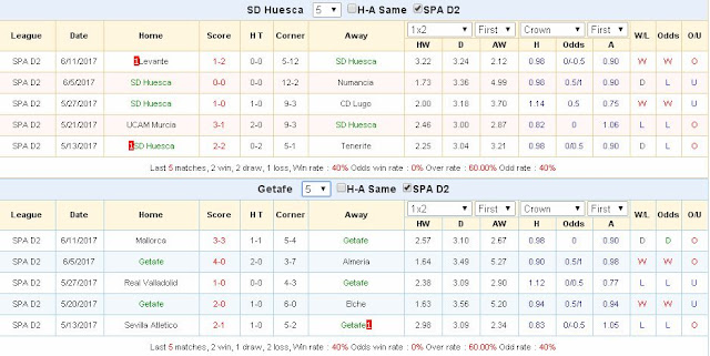 Trận đấu cạnh tranh tấm vé lên giải hạng nhất Tây Ban Nha nên vô cùng hấp dẫn người chơi kèo châu Á khi các giải lớn đã kết thúc.Huesca tuy có thành tích xếp hạng kém hơn Getafe trong mùa giải (Huesca (6) Getafe(3) ) nhưng lại có phong độ tốt khi được đá sân nhà. Cụ thể đội bóng này cũng đã trải qua chuỗi 9 trận bất bại liên tiếp