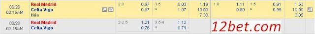| Kèo cá độ bóng đá La liga: Real Madrid vs Celta Vigo Lúc 01h15 ngày 28/8 Đá tại sân nhà CLB Real Madrid