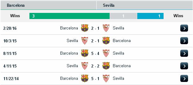 Theo châu Á, Barca thắng 4, thua 2/6 trận gần đây gặp Sevilla.