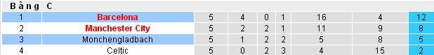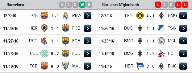 Cũng là một trận đấu thủ tục ở bảng C, khi mà Barca và Man City đã “đóng đinh” lần lượt ở 2 vị trí đầu bảng và có tấm vé vào vòng 1/8. M’gladbach đã có tấm vé xuống Europa League thi đấu.