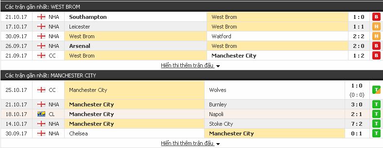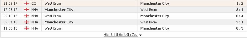- - Man City đã toàn thắng West Brom ở 12 cuộc đối đầu vừa qua. Trong 5 chuyến làm khách gần nhất tới sân của West Brom, Man City ghi trung bình 3 bàn/trận.