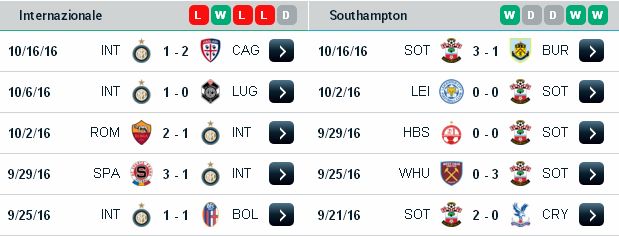 | Dự đoán kèo cá độ Europa League: Inter Milan vs Southampton Vòng bảng, lúc 0h ngày 21/10/2016 Đá tại sân nhà CLB Inter Milan
