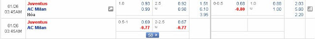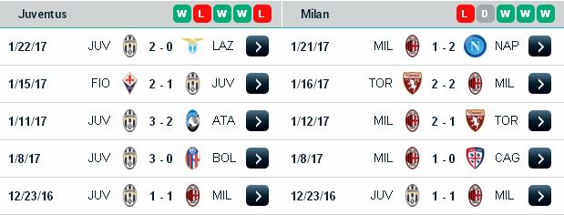 | Tỷ lệ cá độ cup QG Italia - Vòng tứ kết: Juventus vs AC Milan, 02h45 ngày 25/01/2017