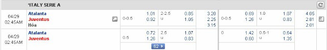 Juventus sắp đá bán kết C1 đầu tháng 5 chính vì thế khả năng "bà đầm già" cất một số trụ cột. Thực ra với khoảng cách 8đ so với đội đứng thứ 2 là Roma Juve kể cả có ngã ngựa ở trận này cũng không quá bi đát vì còn tới 4 vòng nữa để điều chỉnh. Mặt khác Atalanta cũng đang phong độ tốt, nếu duy trì phong độ này tới cuối mùa không biết chừng họ sẽ có mặt trong top tham dự C1 mùa sau. Với tương quan như trên Atalanta +1/4 là kèo thơm để người chơi châu Á lựa chọn. Cùng phân tích thêm một vài thông tin:
