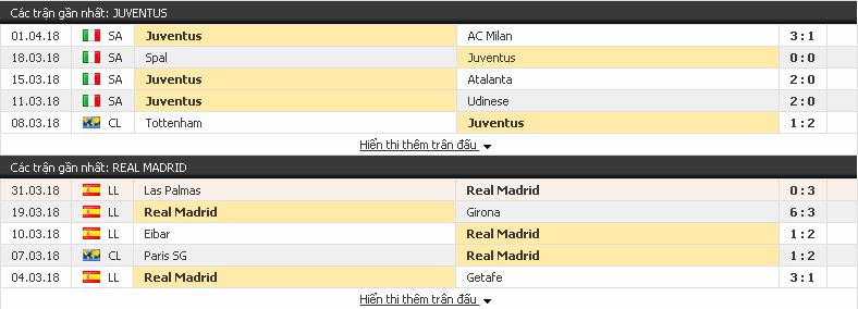Tỷ lệ kèo Juventus vs Real Madrid, 01h45 ngày 4/4/2018