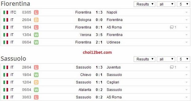 | [CENTER]Soi kèo Serie A: Fiorentina vs Sassuolo Thời gian: 00h00 ngày 7/5 Địa điểm: Sân nhà Fiorentina[/CENTER]