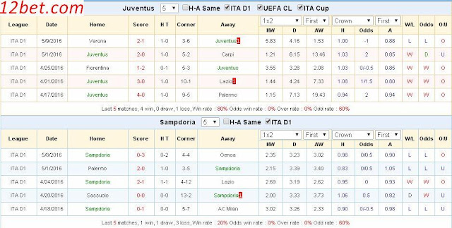 Một cặp đấu thủ tục ở Serie A vòng cuối, Juventus đã vô địch, Sampdoria vị trí trụ hạng. uối tuần trước, Juventus đã có trận đấu hết sức thất vọng khi để thua đội bóng đã xuống hạng là Hellas Verona và đêm nay, “lão phu nhân” chắc chắn không muốn phải nhận một kết quả trắng tay nữa khi đây là trận đấu họ được chơi trên sân nhà và cũng là ngày họ được nhận cúp.