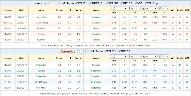 Juventus vẫn đang cho thấy họ là đội bóng không đối thủ tại Serie A , với 4 chiến thắng liên tiếp vừa qua. Trong khi đó ,Fiorentina chưa có được những cải thiện đáng kể những mùa giải gần đây. 4 vòng đấu vừa qua họ chịu tới 2 trận thua. Mặt khác những đối thủ vừa qua chỉ là đối thủ yếu của giải đấu như Bologna hay Hellas Verona. Đêm nay phải đối đầu với một Juventus được đánh giá cao hơn về mọi mặt thì chuyến hành quân xa nhà tiềm ẩn đầy khó khăn