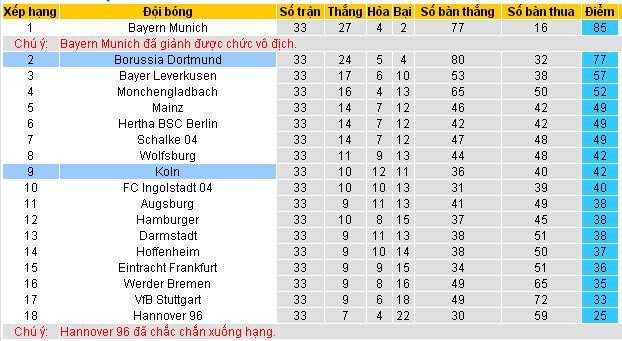Dortmund đã vững vàng vị trí á quân, Koln cũng ở vị trí trụ hạng, Có thể, thầy trò Tuchel được đánh giá cao khi đâu là trận đấu họ có lợi thế sân nhà nhưng không vì vậy người chơi sẽ vội vàng đưa ra quyết định. Cần nhắc lại đối thủ của Dortmund ở trận đấu này sẽ là đội bóng kị dơ Koln.