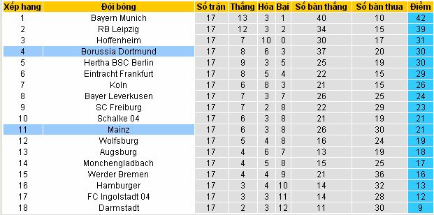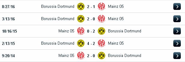Đội hình dự kiến: Mainz: Loessl; Bussmann, Bungert, Bell, Donati, Latza, Frei, Gbamin, Samperio, Muto, Oztunali. Dortmund: Burki; Piszczek, Sokratis, Ginter, Schmelzer, Weigl, Dembele, Goetze, Guerreiro, Reus, Aubameyang.