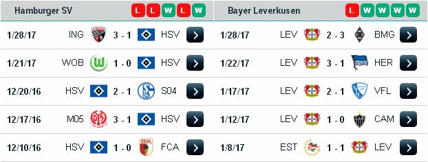 Điều này có thể đạt được bởi lẽ có sự ủng hộ trong quá khứ Hamburger có trận bất bại trên sân nhà gần nhất gặp Leverkusen với 2 thắng, 1 hòa