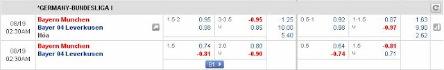 Giải thích tỉ lệ kèo trận Bayern Munnich vs Leverkusen