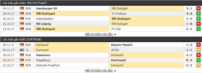 Trong quá khứ Dortmund hoàn toàn áp đảo đối thủ khi bất bại 13 trận gần nhất trong đó có 8 chiến thắng. Thậm chí đội khách đều ghi được ít nhất 2 bàn trong 8 trận gặp Stuttgart gần nhất