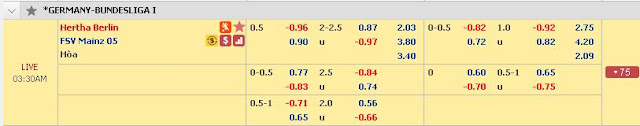 Trong khi Hertha Berlin tìm được niềm vui chiến thắng ở trận vừa qua, tính theo tỉ lệ châu Á họ thắng tời 4 trận thì Mainz lại ngập chìm khủng hoảng. Ở 7 trận gần đây họ để thua 6 trận, còn tính trên sân khách kết quả còn thê thảm hơn khi thua 4 trận liên tiếp và chưa biết đến mùi chiến thắng từ đầu mùa giải. Với những diễn biến như trên rất có thể Mainz sẽ trắng tay ở vòng này và tiếp tục chật vật nhóm đèn đỏ