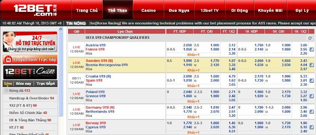 Mời bạn Click để lấy tỉ lệ cược tại 12BET