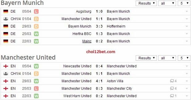 Chuyến hành quân đến Đức lần này Man U không có trong tay đội hình mạnh nhất, chính vì vậy HLV Moyes đã chọn cách dựng một chiếc xe buýt trước khung thành, còn khi có bóng thì chuyền dài vượt tuyến cho hàng công phía trên. Man United đã giữ sạch lưới 5 trong 6 chuyến làm khách gần nhất, đó là hành trang quý giá trước trận lượt về. Hẳn người hâm mộ đang nhớ đến ký ức đẹp của mùa giải 1999 khi họ đánh bại Bayern để bước lên đỉnh vinh quang, đó cũng là chiến thắng duy nhất trong 6 lần gặp nhau gần nhất giữa hai đội (1 thắng 4 hòa và 1 thua).