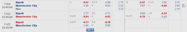 Trong khi đó, Man City lại mới có trận thua mất mặt trước West Brom vòng 10 ngoại hạng anh, đã ảnh hướng không nhỏ đến tâm lý đội bóng. Cũng dàn lực lượng tốt, còn để thua. Chưa kể đêm nay còn phải di chuyển xa xôi đến Ý, gặp đội bóng mạnh hơn WB nhiều là Napoli thì chưa thể tin răng MC sẽ làm nên chuyện. Chẳng vì thế mà mức kèo Châu Á giờ giảm xuống còn 0:0